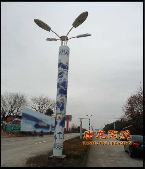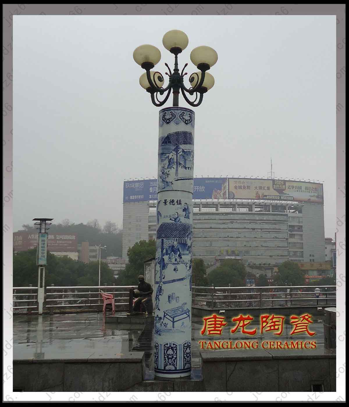 夜幕降臨,城市的霓虹燈亮起為都市添加了一抹亮麗的風景線。而有路燈就必定會有燈柱了,銅、鋼、大理石等造價高,如果采用玻璃鋼和水泥又不耐用,而采用陶瓷材料定做的青花瓷燈柱卻能彌補以上的不足,將它用做園林的陶瓷燈柱,壁畫、陶瓷桌凳和建筑裝飾雕塑尤為理想。